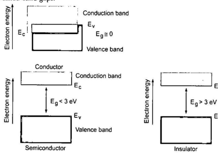 Draw The Necessary Energy Band Diagrams To Distinguish Between Conductors Semiconductors And Insulators How Does The Change In Temperature Affect The Behaviour Of These Materials Explain Briefly From Physics Semiconductor Electronics Materials