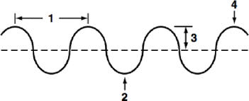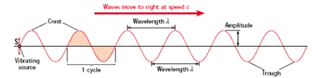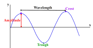 We will be considering the parts of a wave with the wave represented as a transverse wave as in the following diagram: In the above diagram the white line represents the That section which lies below the undisturbed position is called the trough. These sections are labeled in the following diagram