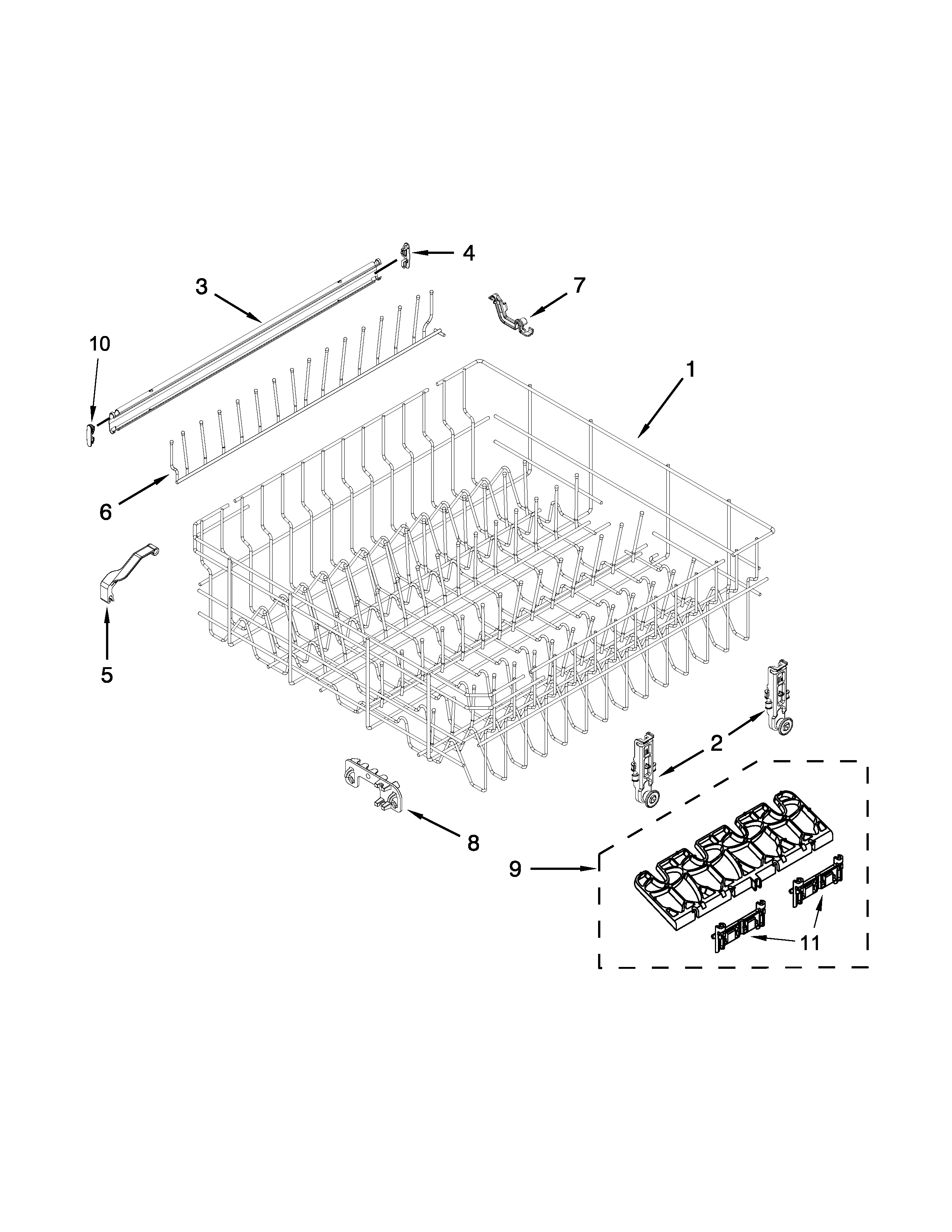 Dishwasher upper dishrack adjuster kit This kit includes both left and right side adjusters and all components needed to service the upper rack rollers.