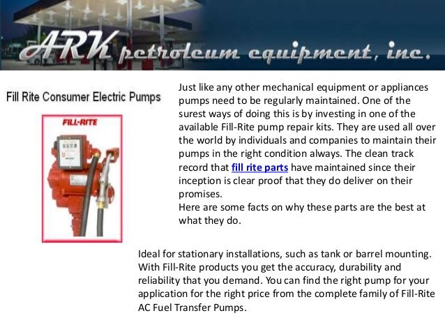 Instruction Manuals. Find the most current product instruction manuals here. Enter your model number in the Search field or you can manually sort by product category, product series, or model number in the table below. For additional assistance, please contact Customer Service at (800) 634-2695 or FillRiteSales.com. Show. 2. Disconnect power to pump before servicing pump. 3. Take motors needing service to an authorized repair shop to maintain “explosion-proof” and “rain-proof” integrity. 4. A Fill-Rite filter should be used on pump outlet to ensure that no foreign material is transferred to fuel tank. 5. The pump motor is equipped with thermal overload ... Fill-Rite Pump Rebuild Kits For FR310, FR301. As Low As: $229.99. Fill-Rite FR30 Series Quart Stroke Hand Pump Parts Kits.