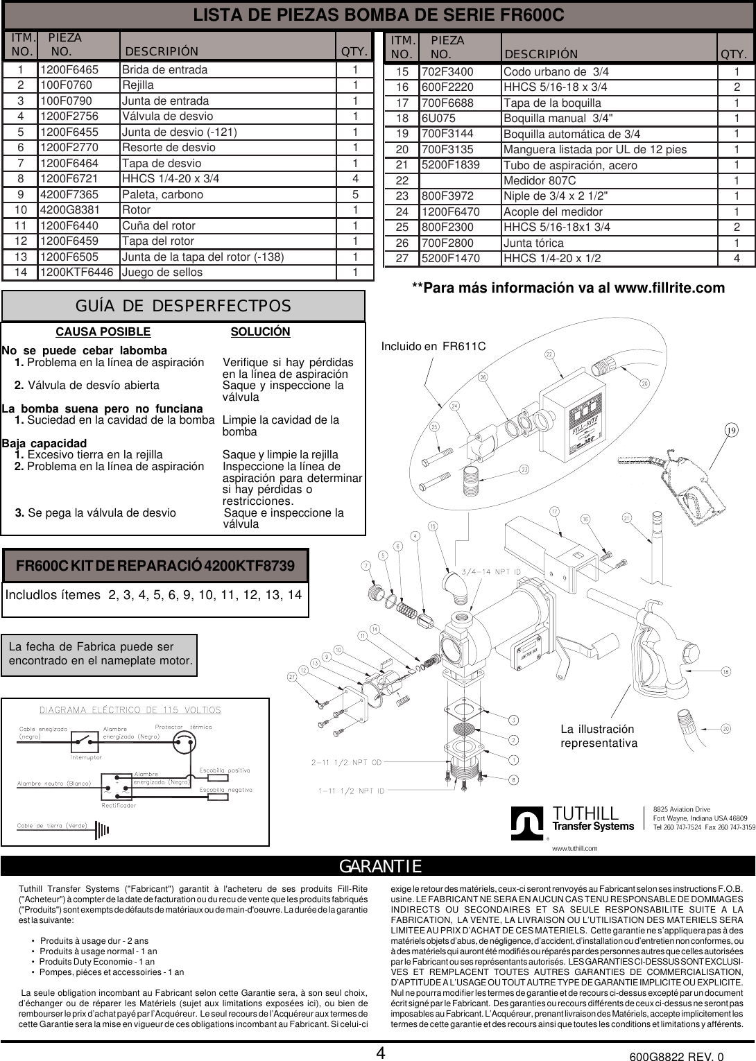 Manufacturer of Fill-Rite fuel transfer pumps, Fuel Management System, Sotera chemical transfer pumps, and meters. Tuthill Ft. Wayne & Lenexa 8825 Aviation Drive Ft. Wayne, IN 46809. Tap or Click for Customer Service: Phone: (260) 747-7524; Toll-Free: (800) 634-2695; Fill-Rite Email: FillRiteSales@tuthill.com; Sotera Email: SoteraSales@tuthill.com Only $31.20. Model # KIT120BD (Fill-Rite / Tuthill) Bio-Diesel / E85 Conversion Kit For FR1200, FR2400, FR4200, FR4400, FR600, SD1200, and SD600 Series Pumps. The Fill-Rite series 300V pump is designed to offer several different mounting configurations. It can be mounted on a skid tank using the tank adapter supplied with the pump (see attached diagrams), direct mounted to the top of an underground tank, or mounted on a concrete island Fill-Rite Pump Rebuild Kits For FR310, FR301. As Low As: $229.99. Fill-Rite FR30 Series Quart Stroke Hand Pump Parts Kits.