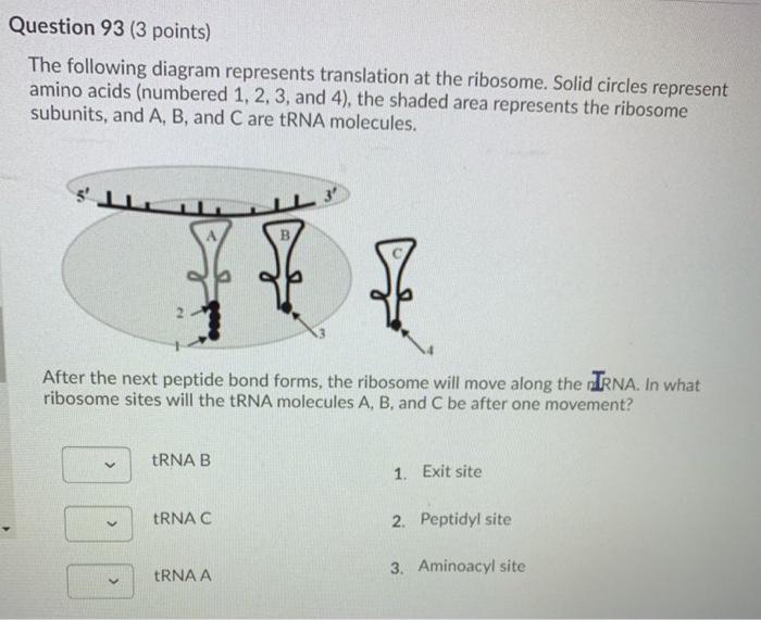 Learn how to answer Diagram Labelling questions. Follow this proven strategy & discover key tips Before checking the answers, see if you can label the diagram following the steps in the strategy. I conclude that I will identify the correct answers by finding out how deep the different types of dung... The following diagram depicts the molecular structure of dna. A trna attached to a single amino acid enters here. 1c ribosome 2a nucleus 3b messenger Match the parts in the diagram with the correct label. Although some variations are observed among the prokaryotes findings using e. The orderly... Labelling a diagram. This task type is often used with texts describing processes or with descriptive texts. You are required to label numbered parts of a diagram that relates to a description contained in the passage. You will write the correct labels in the spaces on your answer sheet. Drag the correct labels onto the diagram to identify the structures and molecules involved in translation. A trna molecule label 5. Label each structure in the following A trna attached to a single amino acid enters here label 3. The synthesis of a specific sequence of amino acids on a ribosome.