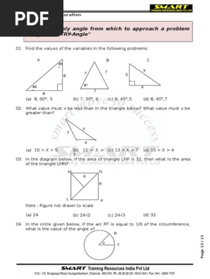 And then there's a diagram below with triangle ABC, where X is on line C, BC=45, AC=21, and BX=30. Unions and Intersections of Sets (Algebra) Part 1: Answer the following question: In a survey of students about favorite sports, the results include 22 who like tennis, 25 who like football, 9 who like tennis and football, 17 who like tennis and ... Unit 4: Quadrilaterals. Lesson 4- 4: Rectangles, Rhombus and Squares: algebra applications. Objectives: Students will be able to recall rectangle, rhombus and square properties. 10 In the diagram below of right triangle KM.I, altitude IG is drawn to hypotenuse KM.. f1-Jl!9t K q G ){ ~1l M 16 rx If KG = 9 and I G = 12, the length of IM is (1) 15 @20 (2) 16 (4) 25 11 Which three-dimensional figure will result when a rectangle 6 inches long and 5 inches wide is continuously rotated about the longer side? 44. In the diagram below of ^ADE, B is a point on AE and C is a point on AD such that BC k ED, AC = x 3, BE = 20, AB = 16, and AD = 2x + 2. Find the length of AC. 45. In the diagram below, ^ABC ˘^EFG, mOC = 4x + 30, and mOG = 5x + 10. Determine the value of x. 46. The plot of land illustrated in the accompanying diagram has a perimeter of 34 ...