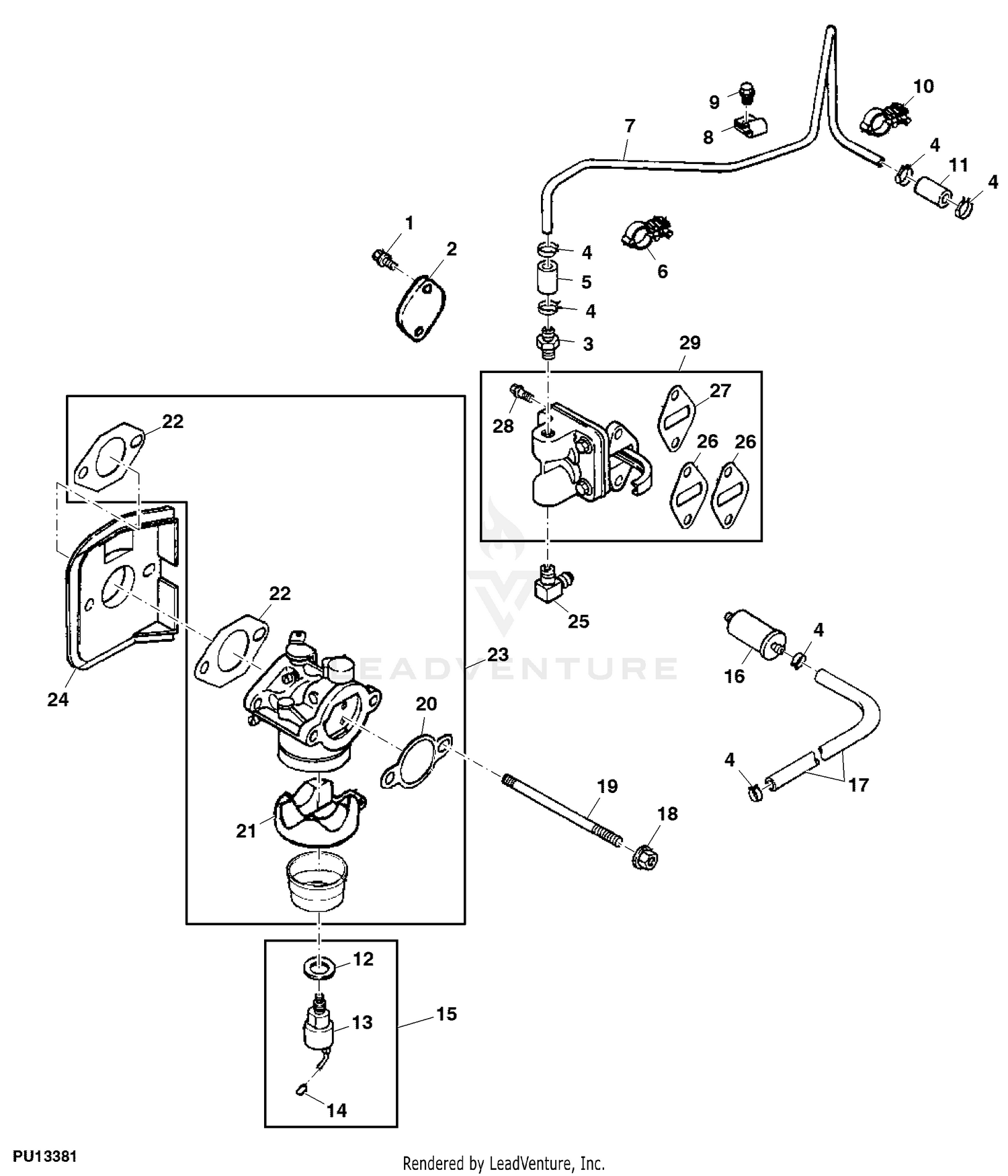 Buy Genuine OEM John Deere parts for your John Deere LA105 Tractor Material Collection System -PC9740 ... Carburetor Engine Marked 31P6770239B1: FUEL & AIR.