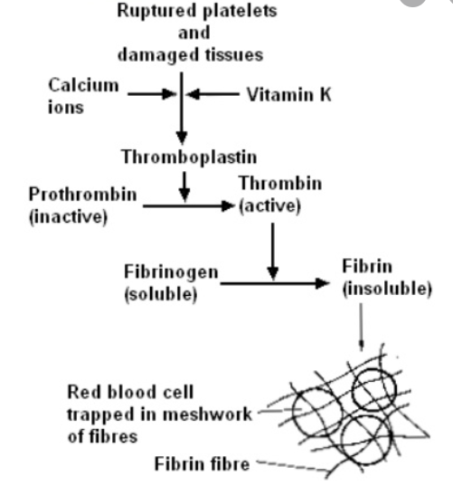 Blood clotting process is a complex process, the basic mechanism of which is formation of insoluble fibrin threads from the soluble plasma protein called fibrinogen. The fibrin threads then form a network within which the red and white blood cells become entangled. Formation of fibrin from fibrinogen is catalyzed by an enzyme named thrombin.