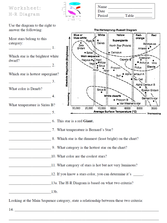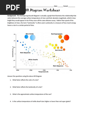 Some of the worksheets displayed are Work stars and hr diagram, Hr diagram work answer key pdf, F6 the hertzsprung russell diagram, H r diagram spread enter the data the plot, Plotting variable stars on the h r diagram activity, Lesson plan g2 the stars, Properties of stars, The hertzsprung russell diagram. 5.