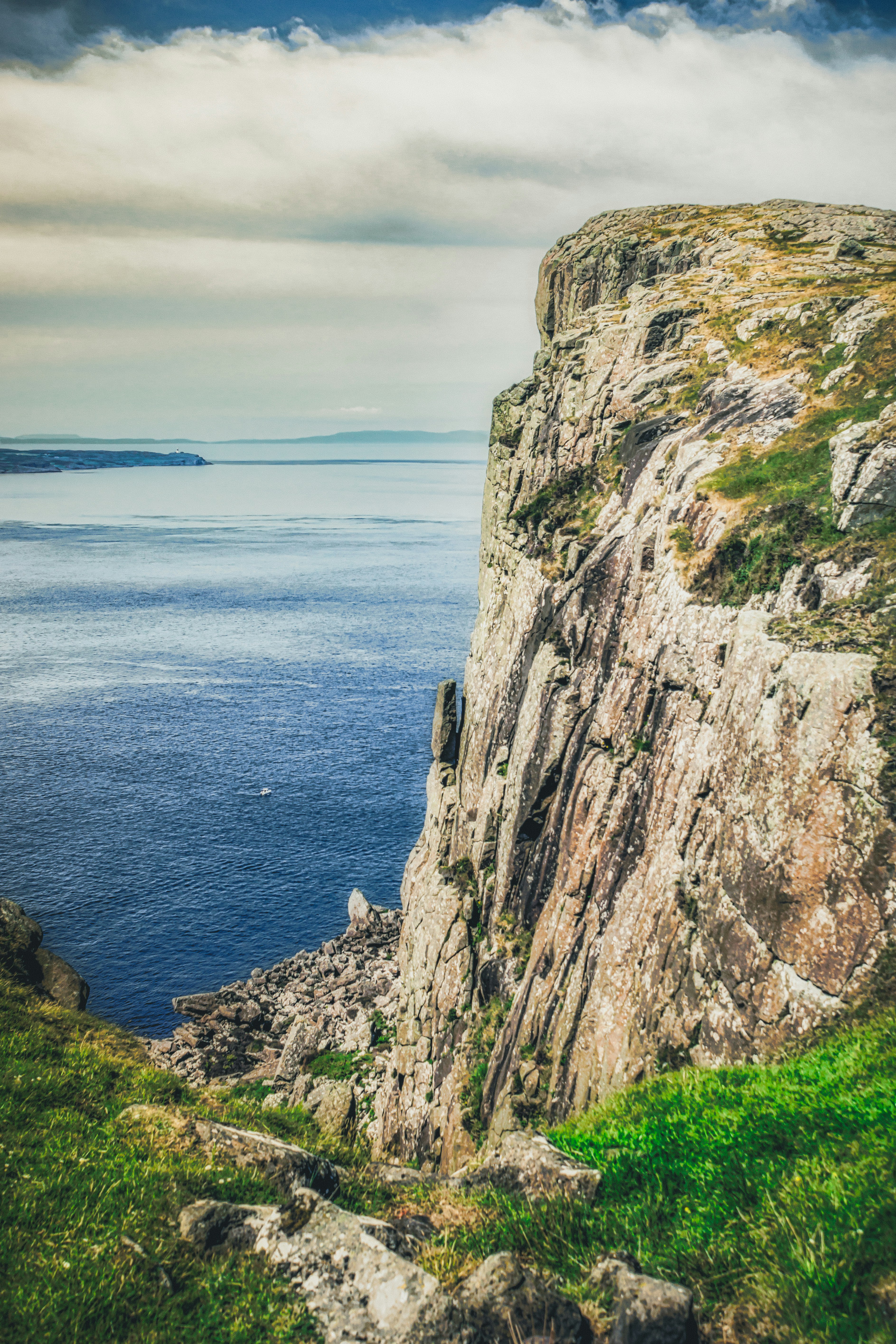Looking out over the North Atlantic to Rathlin Island and the Coast of Scotland from Fair Head on the North Coast (Jun., 2020).