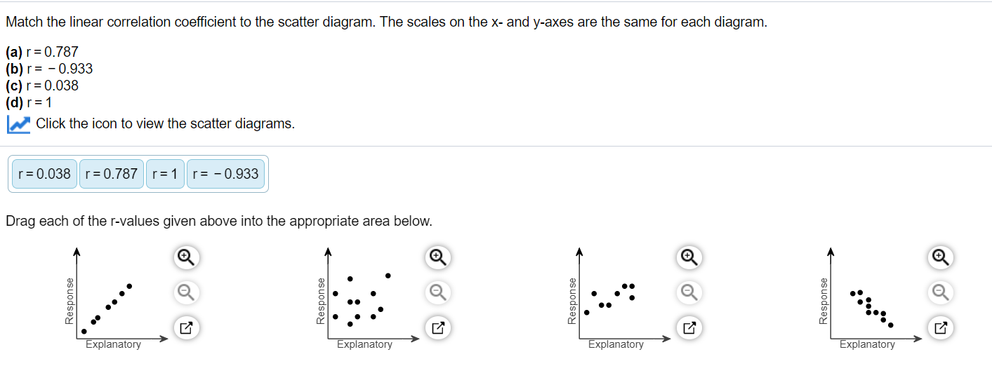 40 match the linear correlation coefficient to the scatter diagram