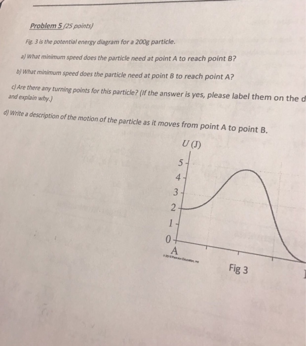 Introductory Physics Homework Help. Potential-energy diagram help Thread starter fsm; Start date Dec 6, 2006; Dec 6, 2006 #1 fsm. 88 0. I am given a potential-energy diagram with the vertical axis is potential-energy and the horizontal axis is x. The mass of the particle is 500g. They are asking the velocities of b, c, and d. I am completely ...