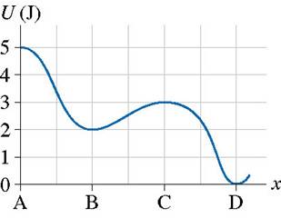 The figure is the potential-energy diagram for a 500 g particle that is released from rest at A. What are the particle's speeds at B, C, and D? Learn this topic by watching Force & Potential Energy Concept Videos.