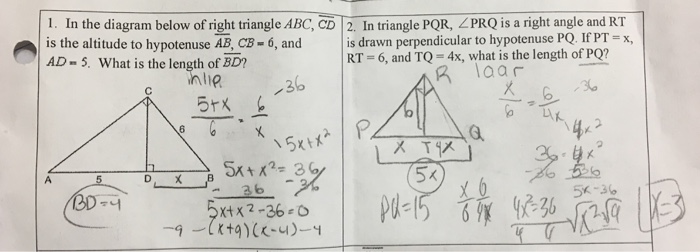 Video tutorial, practice problems and diagrams. ... Find the length of side X in the right triangle below. problem. Show Answer Toggle Dropdown.6 Oct 2018 · Uploaded by mathwarehouse 31 Jan 2017 — Next, use the side of length 7 as the base and write the equation for the area: (1/2)(7)(x) = 18. Now solve for x, the unknown height: 7x = 36 x = 36/7In the diagram, what is the length of AB? : Data Sufficiency (DS)6 Feb 2012Which of the following could be a value of x, in the diagram ...22 May 2016More results from gmatclub.com 1 answerStep 1. We have to calculate the value of x. Step 2. In the given figure we have two triangles △ABC and △ADE image ∠BAC=∠DAE = common angle