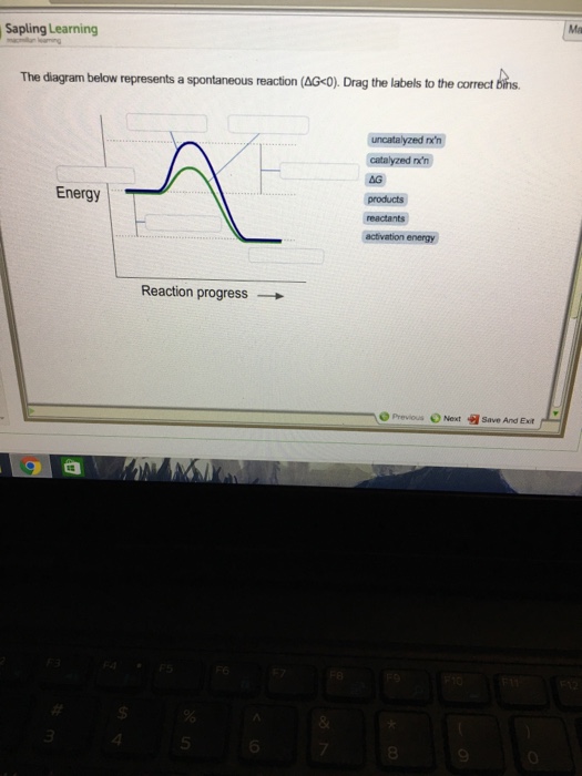The diagram below represents a spontaneous reaction (deltaG degree < 0). Drag the labels to the correct bins. uncatalyzed rx'n Delta G degree standard free E of activation products reactants catalyzed rx?n. Question: The diagram below represents a spontaneous reaction (deltaG degree < 0).