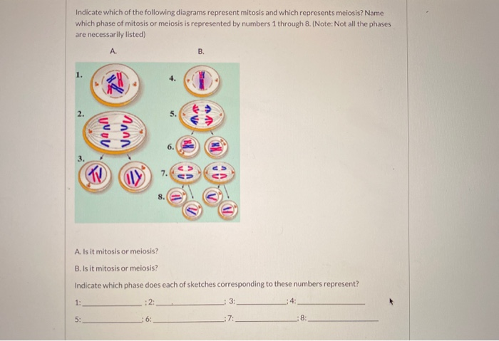 Mitosis is the simplest of the two ways (mitosis and meiosis) in which the nucleus of a cell can divide - as part of. Diagram of crossing-over. Note that while crossing over is shown here, for simplicity, between only one of the two chromatids of each chromosome, each. Answers: 3 on a question: The diagram shows a phase of mitosis. A phase of mitosis is shown. The chromosomes lined up at the center. Letter A represents long strings inside of the cell. Which does the letter A represent in the diagram? centriole chromosome centromere spindle Instead, they split up their duplicated chromosomes in a carefully organized series of steps. Phases of mitosis Mitosis consists of four basic phases: prophase, metaphase, anaphase, and telophase. Some textbooks list five, breaking prophase into an early phase (called prophase) and a late phase (called prometaphase). If so, why is it still called M phase in Meiosis?