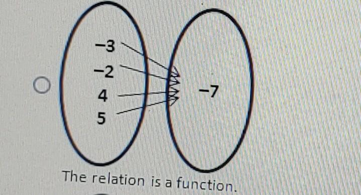 Identify the mapping diagram that represents the relation ... Dec 13, 2019 · Algebra. Identify the mapping diagram that represents the given relation and determine whether the relation is a function. { (–3, –6), (–1, –6), (5, –6), (8, –6)} It won't let me update the pictures, but I think it might be a.