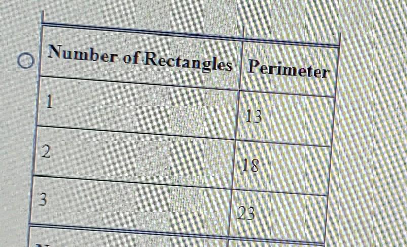In the diagram below, what is the relationship between the ... In the diagram below, what is the relationship between the number of rectangles and the perimeter of the figure they form? Which of the following tables represent the relationship in the diagram below?