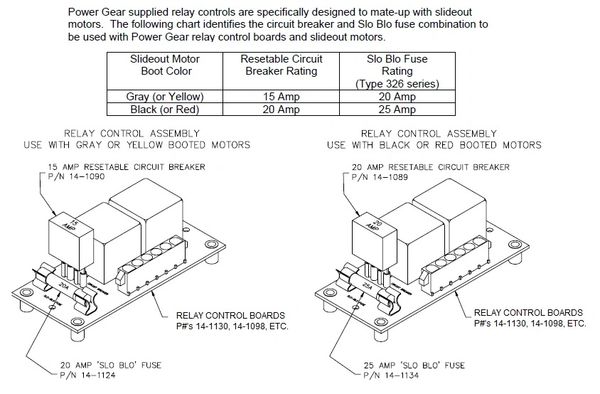 Power Gear Slide Out Control Relay Module Fleetwood ... Power Gear Slide out control module #140-1130. Lippert Part number is #368859. Replaces part# 14-1096 you have to rewire the wall switch to be 12VDC switched instead of ground switched. Positive activated to the switch. Wiring Harness is part# 171-141138; If using 15 AMP Circuit Breaker part# 171-141090, use 20 AMP Slo Blo Fuse part# 171-141124