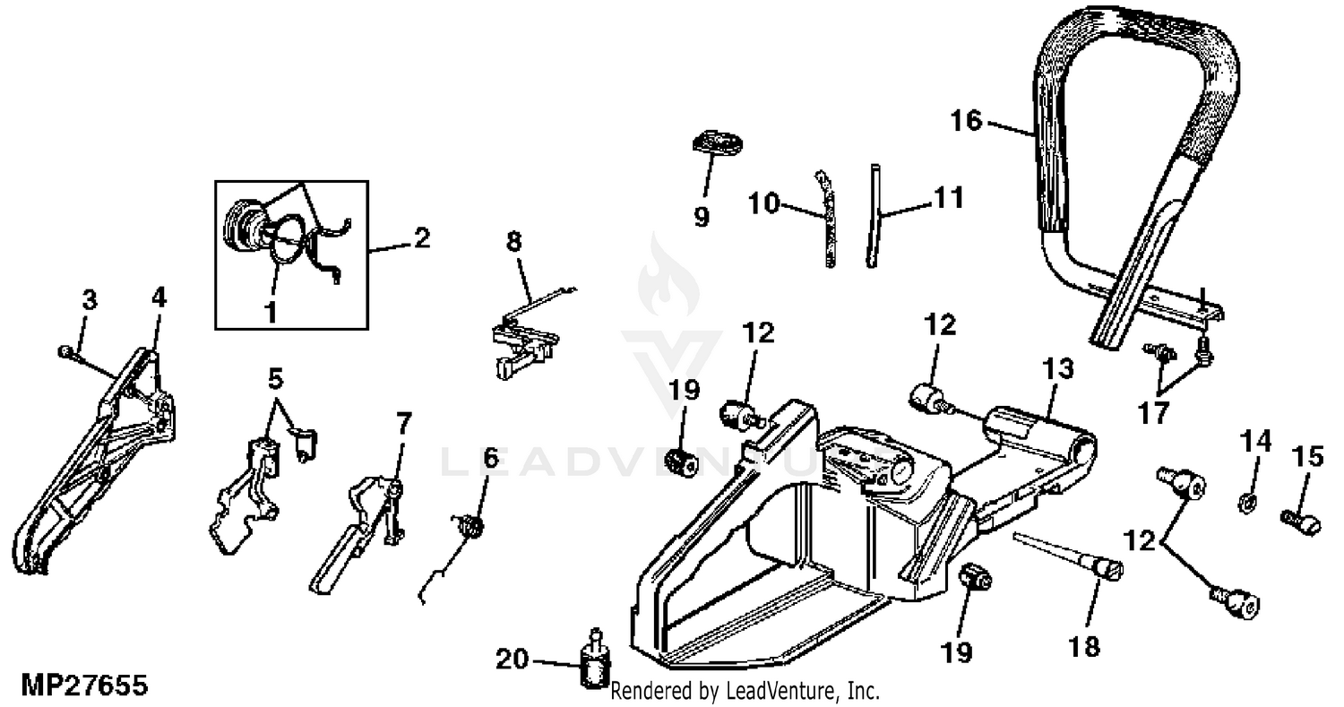 John deere chainsaw parts diagram. John Deere Parts Diagrams, John Deere 80EV CHAIN SAW -PC1598 Buy Genuine OEM John Deere parts for your John Deere 80EV CHAIN SAW -PC1598 and ship today! Huge in-stock inventory of OEM John Deere parts. John Deere Parts Lookup - Weingartz You can easily find replacement parts for your all your John Deere equipment on our website or in our stores. We ship all in-stock parts ordered by 4:00 p.m. EST the same day! Search Weingartz for diagrams, our John Deere parts catalog, and quick reference guides. We hope that you find our site useful and our customer service friendly and ... John Deere CS62 Chain Saw Maintenance Guide & Parts List Service Schedule Parts for a John Deere CS62 Chain Saw & Parts List. While your John Deere machine is certainly built with quality parts, they have a limited life. Good news is you can easily service your machine yourself using a John Deere maintenance kit or service kits or by getting the specific John Deere part needed to keep your John Deere mower or tractor running for a long time. John Deere Chainsaw Parts at Jack's John Deere Chainsaw Parts. John Deere Chainsaw Parts: Jack's is your place! We have the John Deere Chainsaw Parts you need, with fast shipping and great prices. For power equipment parts and accessories, think Jack's!